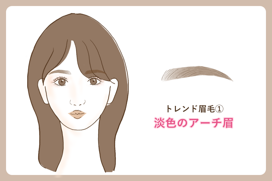 淡色のアーチ眉とは、明るめの色で緩やかな丸みのある眉のことです。色は髪色よりも肌なじみのよさを重視した色にして、やわらかさや垢抜け感を演出します。淡色にすることで、アイメイクを際立たせる効果もありますよ。