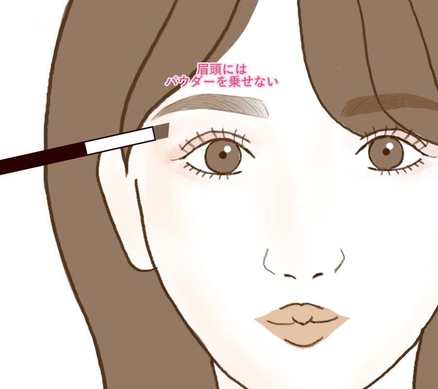 - 目尻にはアイブロウパウダーを乗せず眉尻に向かってのグラデーションで抜け感を演出
