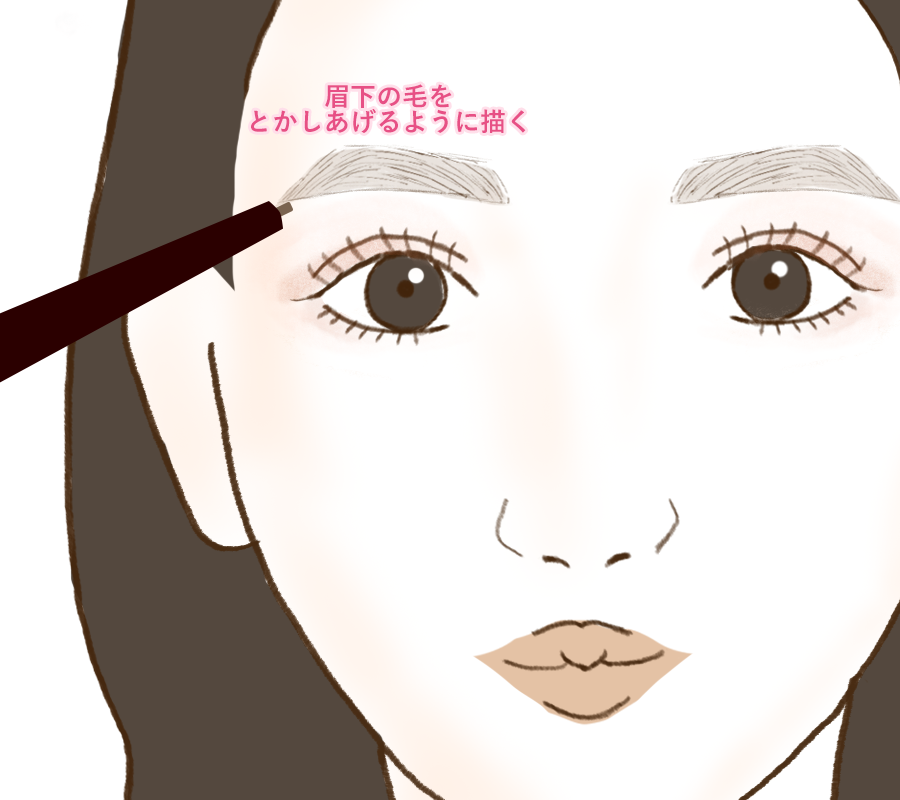 ベースはストレート眉が主流です。眉下のラインにある眉毛をアイブロウペンシルでとかしあげるように描いて、ストレートなラインを作りましょう。できるだけ自眉を活かせるように自眉の色に近い色のアイブロウペンシルを使うのがポイントです。
