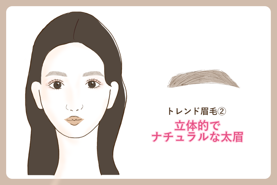 立体的でナチュラルな太眉もトレンド眉のひとつです。自眉を活かした太めのストレート眉で、凹凸を意識して立体感を演出しています。立体的でナチュラルな眉の手本としては、海外セレブたちの眉が参考になりますよ。