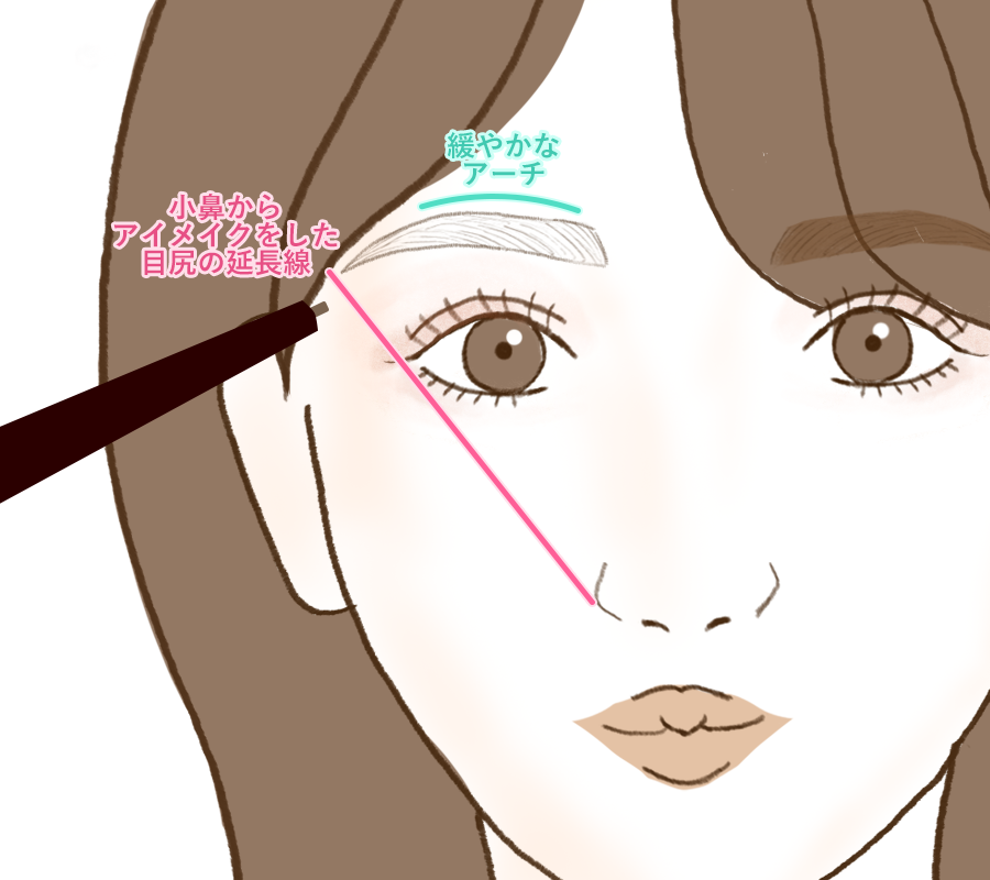 - 眉尻は小鼻から目尻への延長線上の辺りに