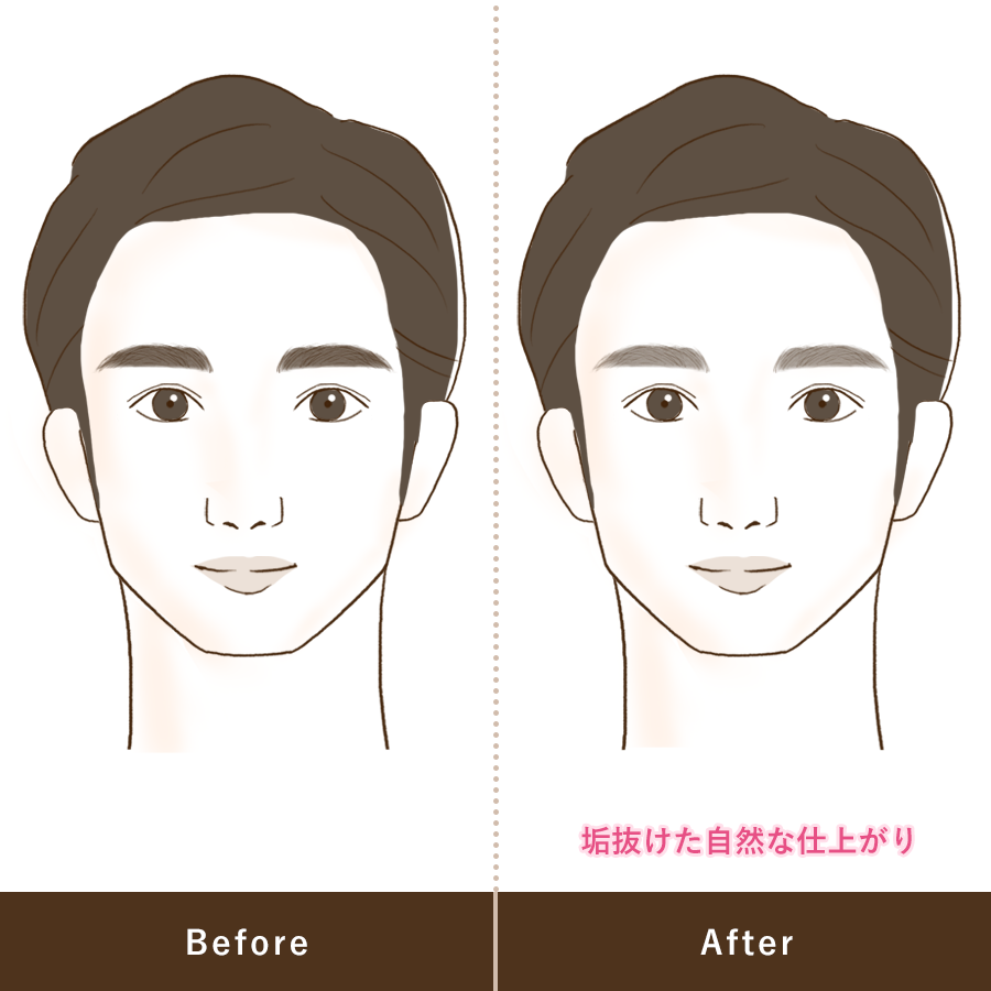 男性は女性と比べると、眉毛の手入れ不足で産毛が残っている傾向があり、眉頭・眉山・眉尻が明確になっていないケースもあります。各パートを正しい場所に作り、理想的な形のメンズ眉を目指してください。