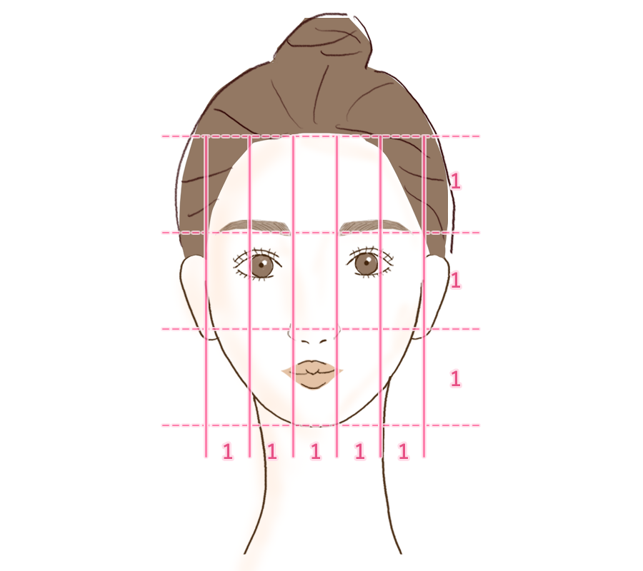 40代に似合う眉毛の理想的な位置は、顔の横幅・縦幅との比率で決めましょう。まず、顔を撮影した写真に加工アプリなどでグリッド線を引き、横幅・縦幅の比率をチェックしてみてください。