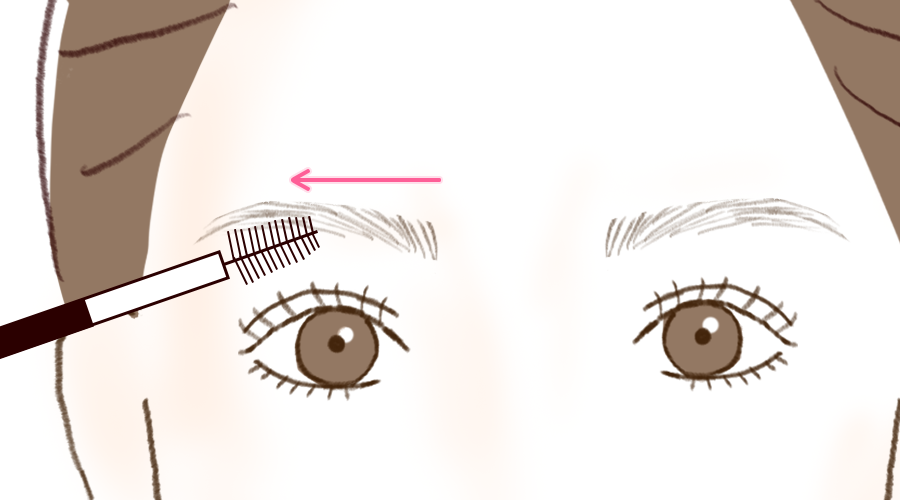 まず、ブラシを水平に持ち、眉頭から眉山に向かって垂直にブラッシングしましょう。手首だけを動かすイメージで、5回ほど繰り返してください。