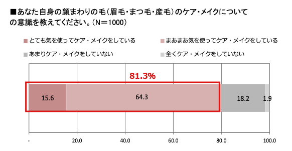 上記の結果より、顔まわりの毛(眉毛・まつ毛・産毛)のケア・メイクをしっかり行うことは、ライフスタイルへもよい影響を与えるものだといえるでしょう。