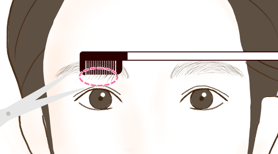 不要な毛をカットできたら、眉毛全体の長さと量を調整しましょう。コームで眉毛を下から持ち上げ、眉毛の上の輪郭に合わせます。コームからはみ出た眉毛は他よりも長い毛なので、その毛だけをカットしましょう。