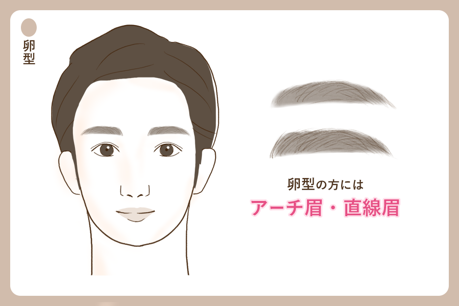 丸顔と面長の中間的な卵型の顔の男性には、アーチ眉・直線眉のどちらもマッチします。やわらかい印象に仕上げたいならアーチ眉、クールな印象に仕上げたいなら直線眉にするとよいでしょう。