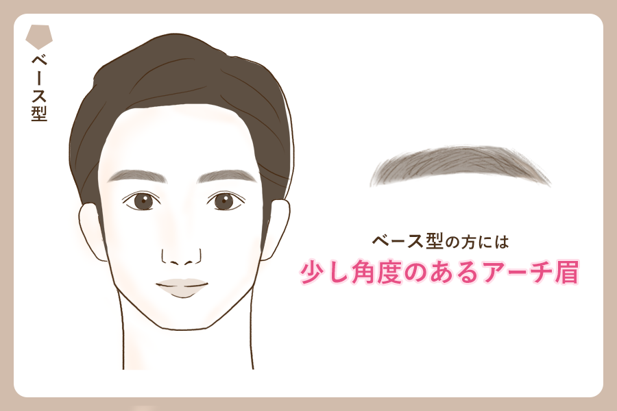 ベース型の顔の男性には、少し角度のあるアーチ眉がおすすめです。平行な眉よりも5度ほど角度をつけた方が、ベース型の顔のフェイスラインをすっきり見せられます。また、やや長めに描いた方が小顔効果が期待できるでしょう。