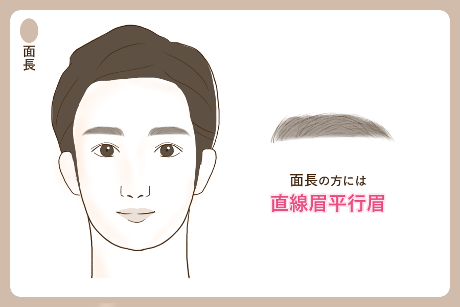 面長の男性には、平行眉がおすすめです。平行眉は、縦に長い顔のシルエットを補い、全体的なバランスを整えてくれます。面長型の顔の横幅は狭く見えるため、眉もあまり長くは描かず、短めに描いた方がよいでしょう。