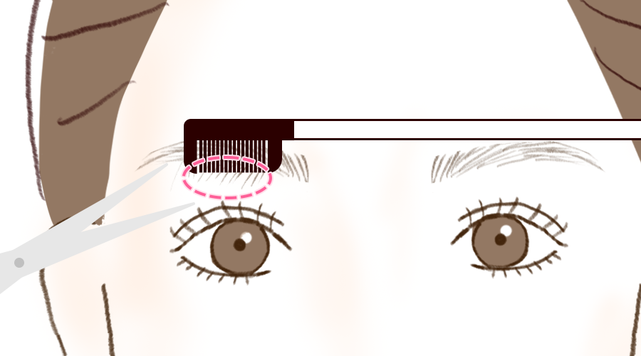 不要な毛をカットできたら、眉毛全体の長さと量を調整しましょう。コームで眉毛を下から持ち上げ、眉毛の上の輪郭に合わせます。コームからはみ出た眉毛は他よりも長い毛なので、その毛だけをカットしましょう。