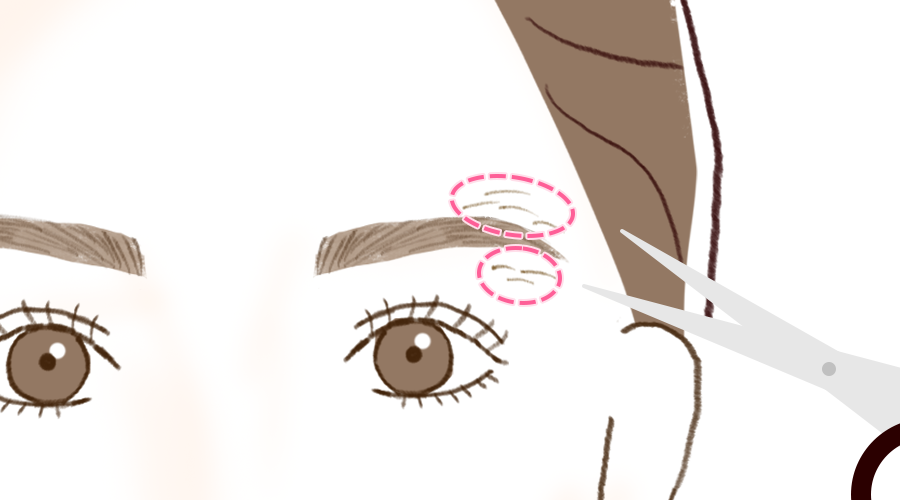 最後に、眉メイクからはみ出ている毛があればカットします。眉バサミで毛先から徐々にカットしていきましょう。困り眉を整える場合、眉頭の上部分や眉尻を少し削る必要があるケースがあります。