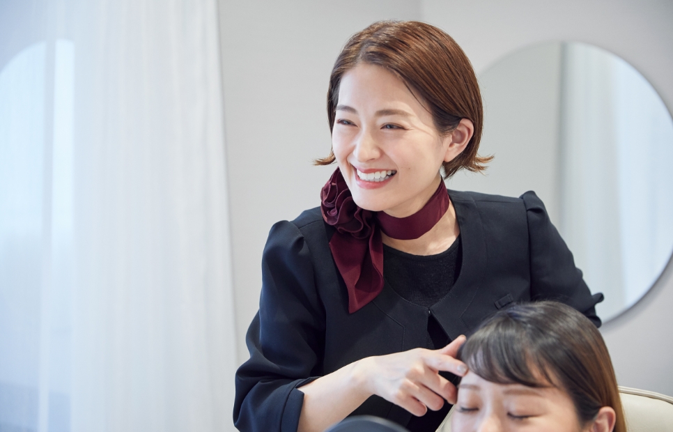 眉毛を整えるときには、立体的に生えている眉毛を、正面・斜め・横などさまざまな角度から見極める必要があります。誰かの眉を真似しても、自分にぴったりの眉にはなりません。だからこそ、プロによるその人に合ったアイブロウメイクアップのポイントの見極めが大事です。