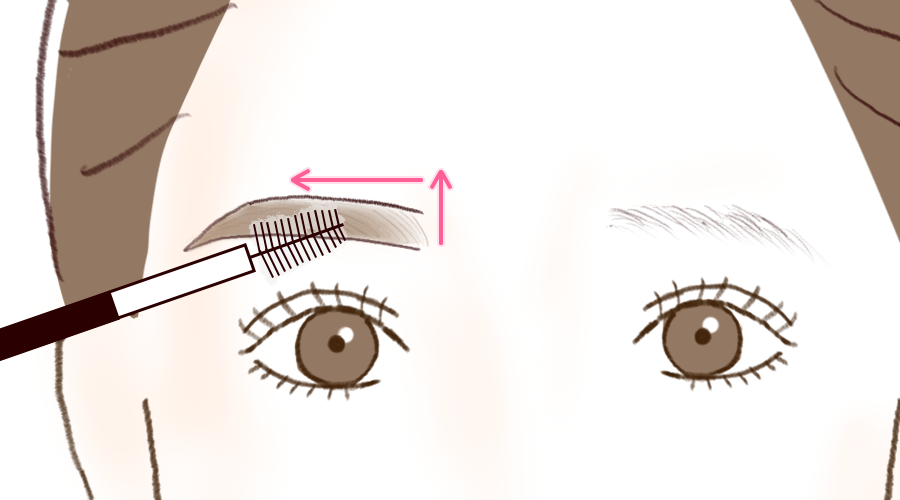 眉全体の濃淡のバランスもここで整えましょう。黒目の上あたりを一番濃く、眉頭を薄めに、眉尻を少し濃いめに調整するとバランスの取れた綺麗な眉になります。