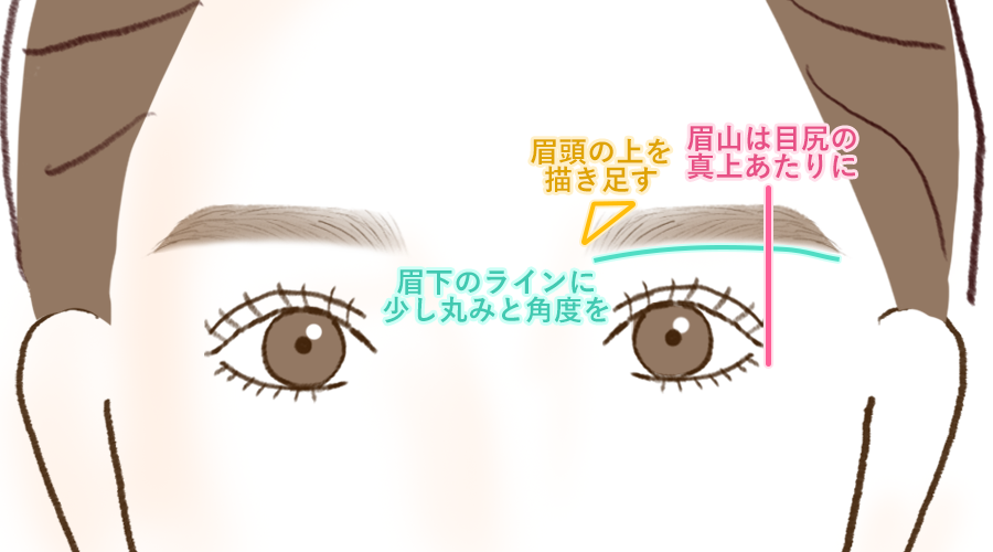 眉の形と位置は、以下のポイントを参考に描いてみてください。
