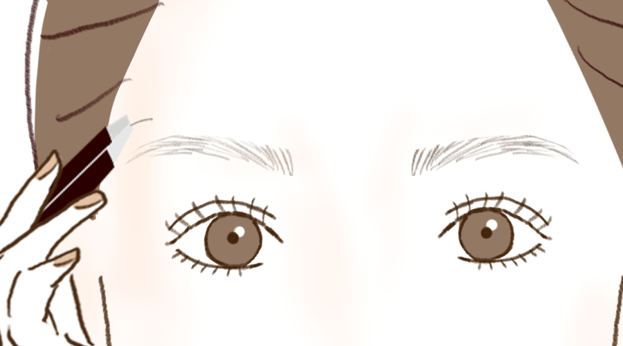 眉毛の濃い部分がわかったら、毛抜きで濃い部分の眉毛1本の毛先を掴みます。上下や左右に毛を動かしてみて、周りの毛の状態を確認しましょう。隙間がある場合、その毛を抜くとその箇所がスカスカになってしまう可能性があるため注意が必要です。隙間がなければ、根元を掴んで毛流れに沿った方向に毛を引き抜きましょう。