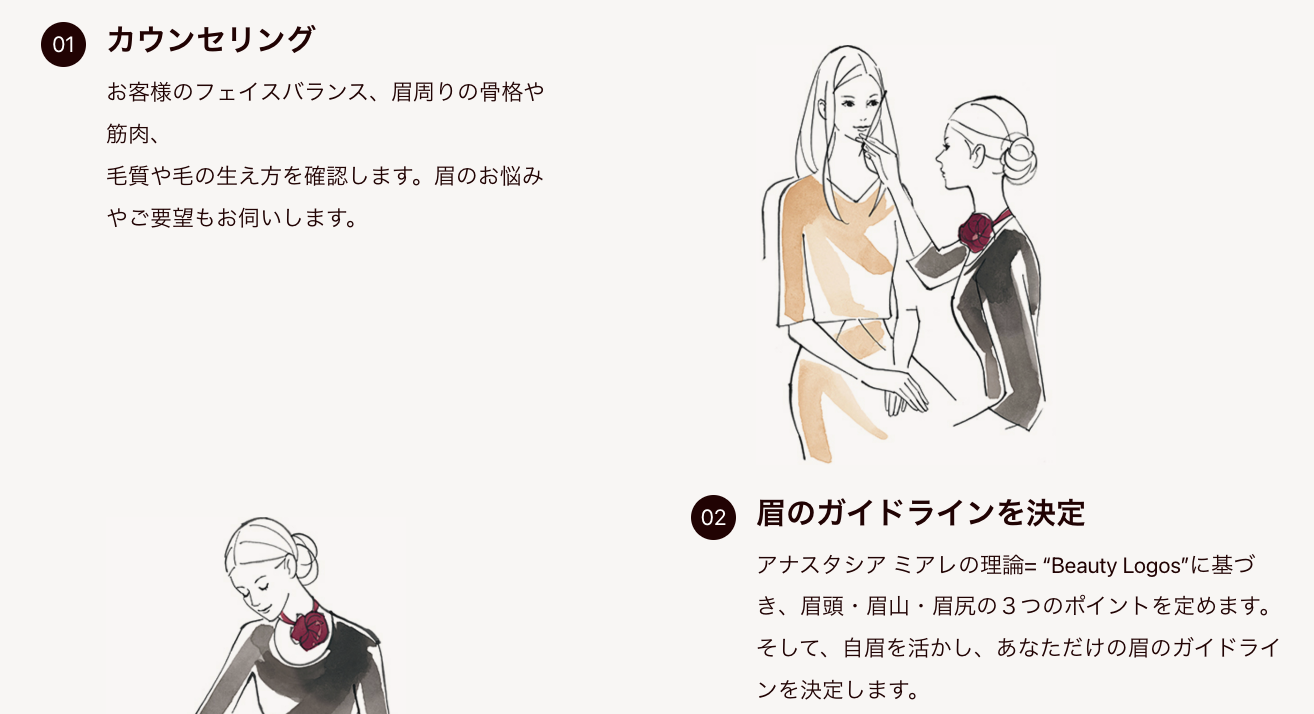 眉の描き方や日々のケアは施術師がレクチャーします。自宅でもアナスタシア ミアレの眉を再現できるようになり、毎日ベストな眉で過ごすことができるようになりますよ。
