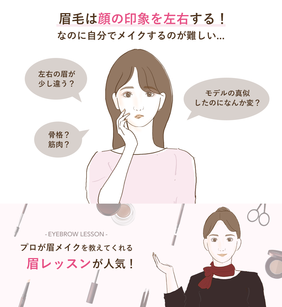 自分の顔に合う眉のメイクアップを学べる眉レッスンが人気を集めています。眉毛は顔の印象を左右する重要なパーツながら、自分でメイクするのは難しいのがその理由です。